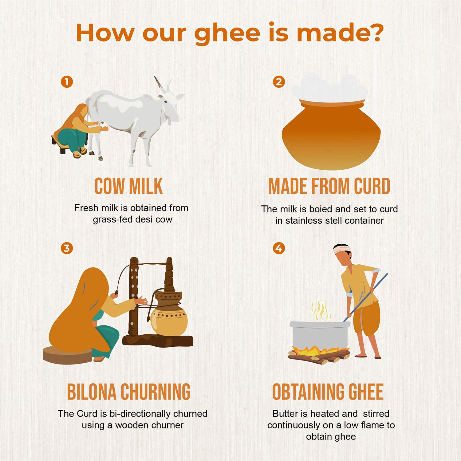 Authentic and Traditional: Made with care using time-honored methods, it retains the authentic taste and texture of traditional cow ghee, offering superior quality.